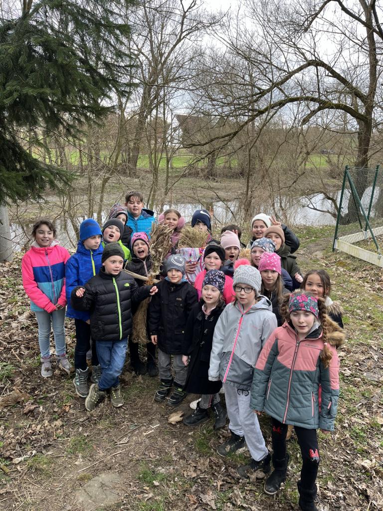 V čele s Moranou jsme se vydali k řece, kde jsme hodili smrtku do vody a nechali ji uplavat, aby odešla zima a přišlo jaro. Žáci se zaujetím pozorovali, jak se Morana vzdaluje, a báli se, aby se nezasekla a nadobro odplula. A tím jsme se rozloučili s paní Zimou a nechali vklouznout mezi sebe vytoužené jarní sluníčko.