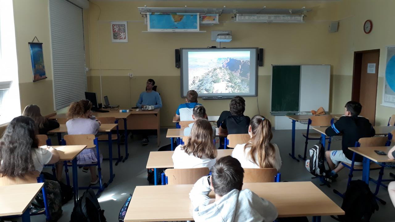 V pátek 10.6. se v učebně zeměpisu uskutečnil blok tří zeměpisných přednášek našeho bývalého žáka Jakuba Greschla.
