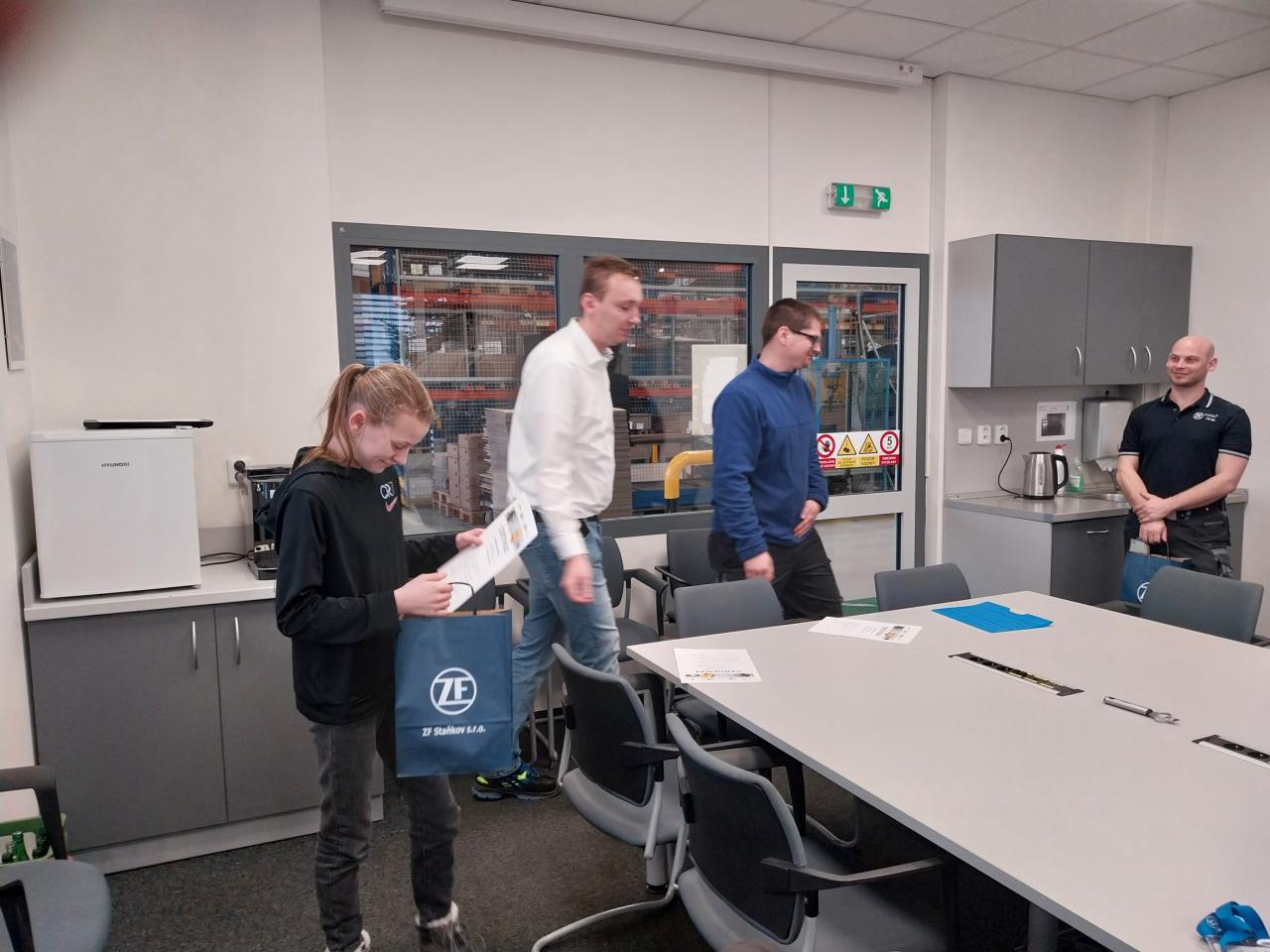 Během jednotlivých workshopů si sedm žáků vyzkoušelo různé elektrotechnické úkoly, jako je zapojení základní desky, práce s elektrickými obvody, diodami a dalšími technickými komponenty. Závěrečné setkání proběhlo v areálu ZF Ohučov, kde žáky v zasedací místnosti nejprve srdečně přivítali zástupci vedení společnosti. Po úvodním představení firmy obdrželi žáci certifikáty o splnění kurzu a drobné dárky. Samozřejmě nechybělo ani občerstvení.