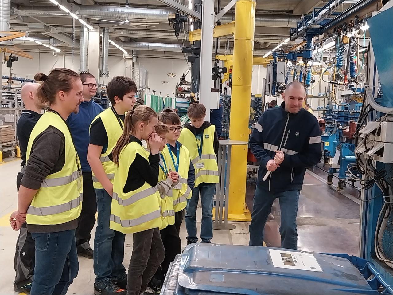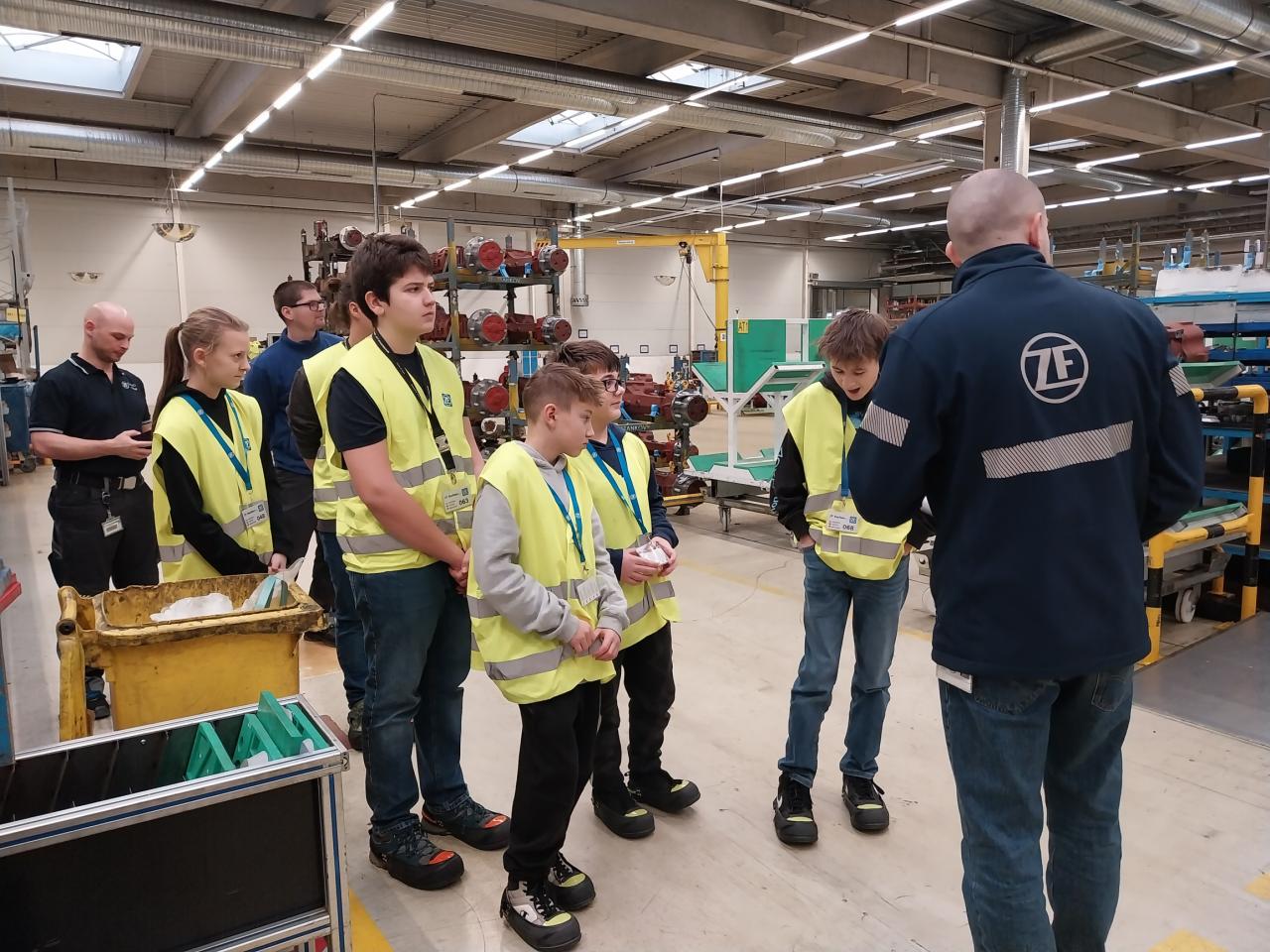 Hlavním bodem návštěvy Ohučova však byla ukázka samotného provozu! Před vstupem do provozních hal si žáci oblékli ochranné vesty, boty a byla jim vysvětlena nezbytnost dodržování bezpečnostních pravidel na pracovišti tohoto charakteru. Následovala návštěva dvou výrobních hal. I když i zde postupně dochází k zavádění robotizace do výroby, (například při kompletaci nábojů kol, diferenciálů či elektromotorů vysokozdvižných vozíků) byla popsána nezastupitelnost lidského faktoru při výrobě. Velmi zajímavou ukázkou robotizace však byla zcela nová "robotická uklízečka", která se začíná používat v jedné z hal. Žáci se na jednotlivých stanovištích techniků a konstruktérů seznámili s postupy kompletace výrobků, a to doslova "od šroubku až po hotový produkt". Velkým zážitkem byla možnost „osahat“ si finální výrobky, které společnost ZF Ohučov produkuje.