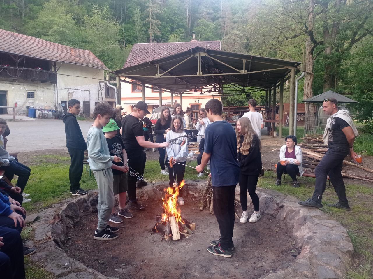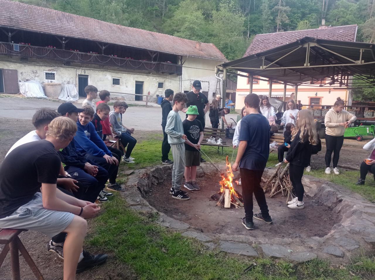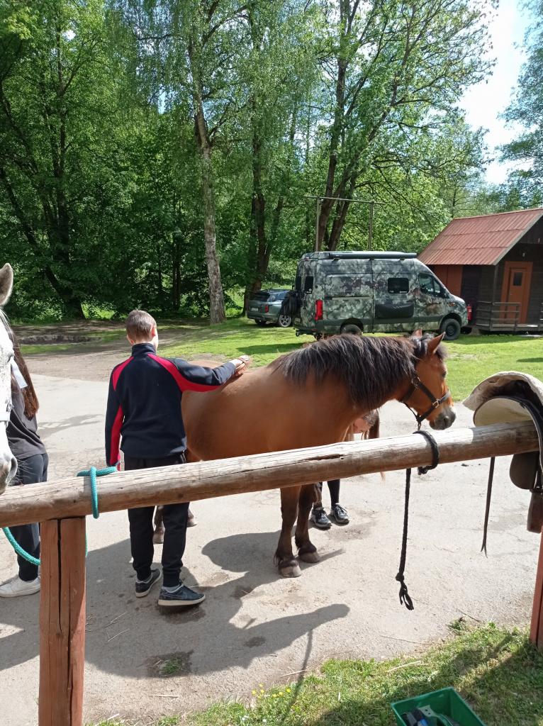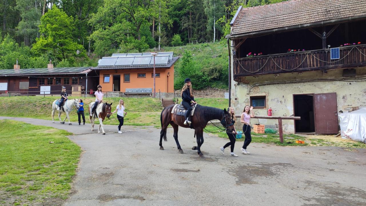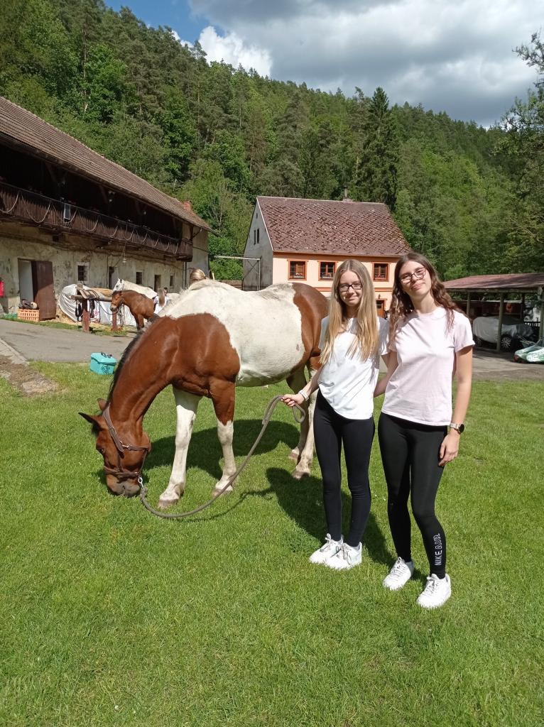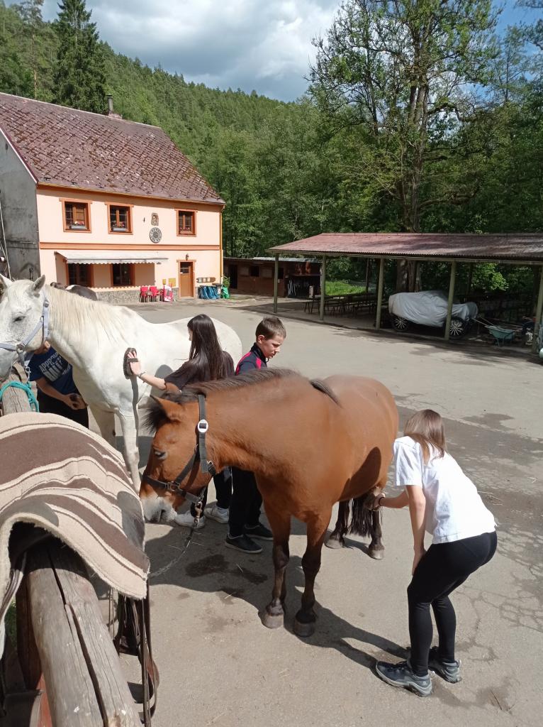 V pondělí 26.5 2025 jsme se vydali na dvoudenní školní výlet na Ranč v údolí. Ráno v osm hodin jsme se všichni žáci osmého ročníku sešli u školy a spolu vyrazili na vlakové nádraží. Jeli jsme přibližně hodinu, než jsme dorazili do Plzně na hlavni vlakové nádraží. Pak jsme přestoupili do druhého vlaku, kde jsme dojeli až do Ošelína u Stříbra. Krátkou cestou lesem jsme dorazili až na konečné místo. Ranč v údolí je malá vesnice, kam děti jezdí na tábor, který je hlavně zaměřený na koně. Když jsme přišli na místo, zabydleli jsme se v malých chatkám a mohli se porozhlédnout po okolí. Následoval program dne. Děti měly na výběr paintball nebo jízdu na koni. Všichni si celodenní program moc užili. Při projížďce na koni jsme mohli pozorovat krásnou krajinu a užívat si pohled z koňského hřbetu. Ostatní děti si užily paintball, u kterého si pěkně zasportovaly. Den jsme zakončili táborákem a opékáním buřtů a nechybělo ani zpívaní písniček při ohni. Druhý den ráno jsme se vydali na zříceninu hradu Volfštejn. Byla to dlouhá, pro někoho i únavná cesta, ale všichni jsme to zvládli. Po náročné cestě jsme si všichni odpočinuli. Dali dobrý oběd a vyrazili na vlak, který nás odvezl zpět do Holýšova. Na výletě bylo pěkné to, že jsme mohli být spolu mimo školu a skvěle se bavit. Výlet se nám moc líbil a rádi na něj budeme vzpomínat.