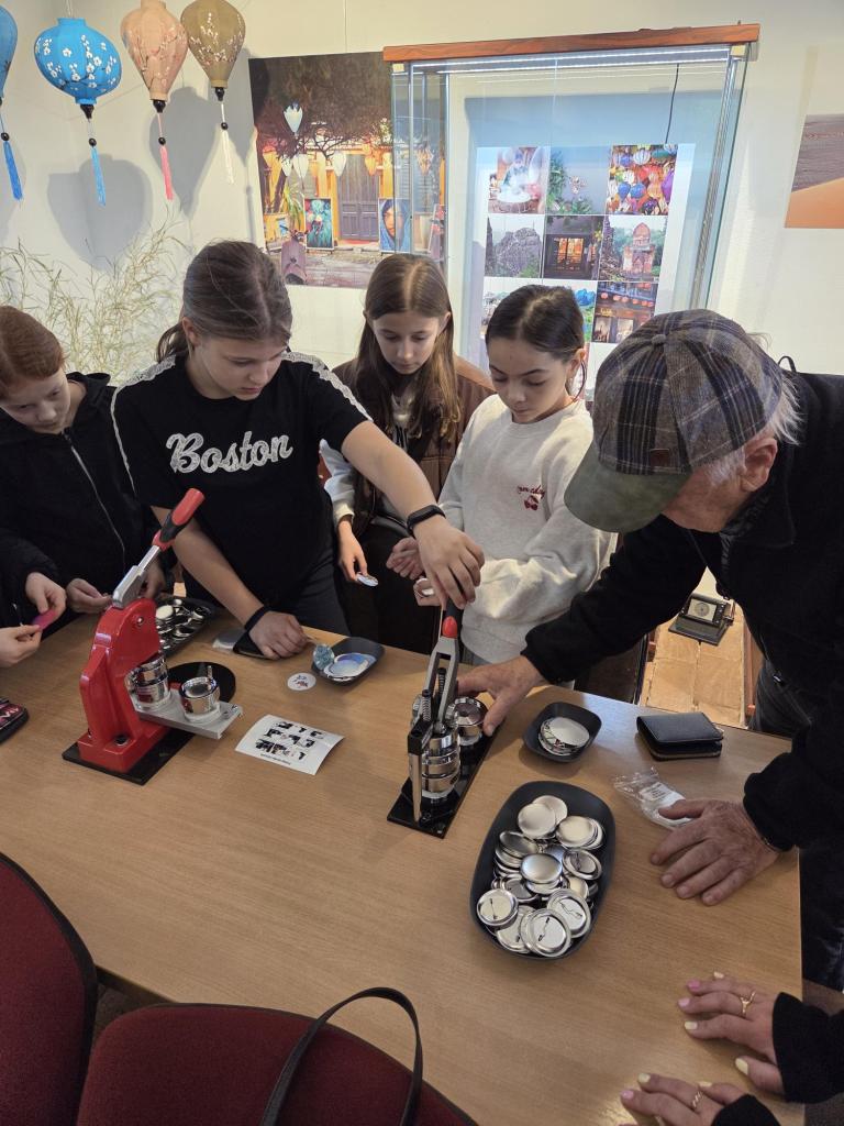 Na závěr programu byla možnost si vyrobit vlastní odznaky s cestovatelským motivem. Děti si také mohly zakoupit různé předměty, jako třeba záložky, samolepky nebo odznaky.