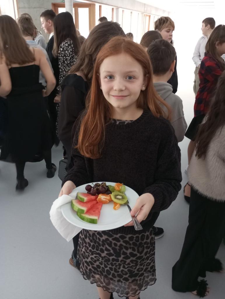 Velkým lákadlem byl bohatý raut, kde si chlapci vyzkoušeli roli ochotných hostitelů a obsloužili své spolužačky. Na výběr bylo vše od sýrů, ovoce a uzenin až po řízky, které zmizely jako první, a nechyběla ani sladká tečka na závěr.