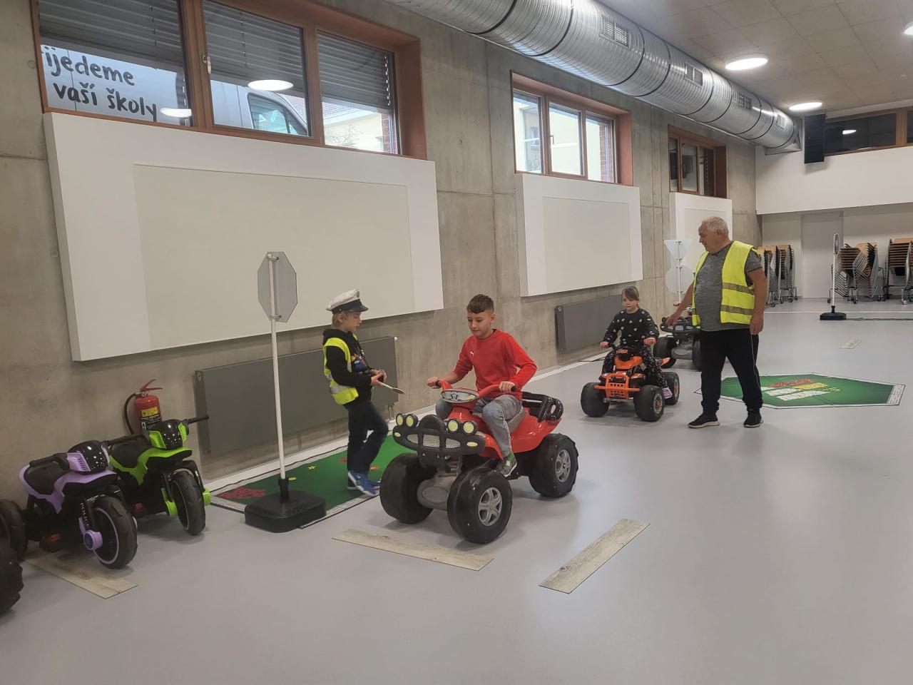 Pod vedením instruktorů se seznámili se značkami, křižovatkami i správným chováním chodců a řidičů. Děti si s nadšením vyzkoušely jízdu na elektrických motorkách a v autech a procvičily si orientaci v dopravních situacích.