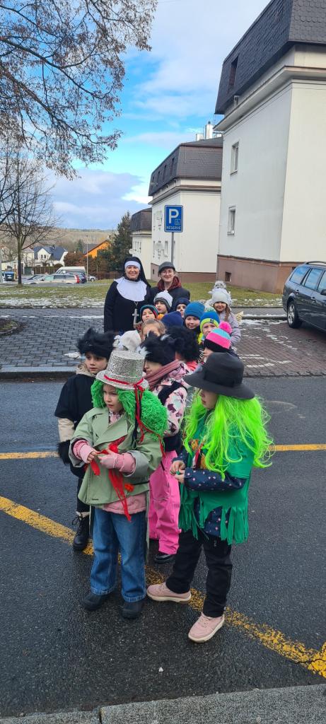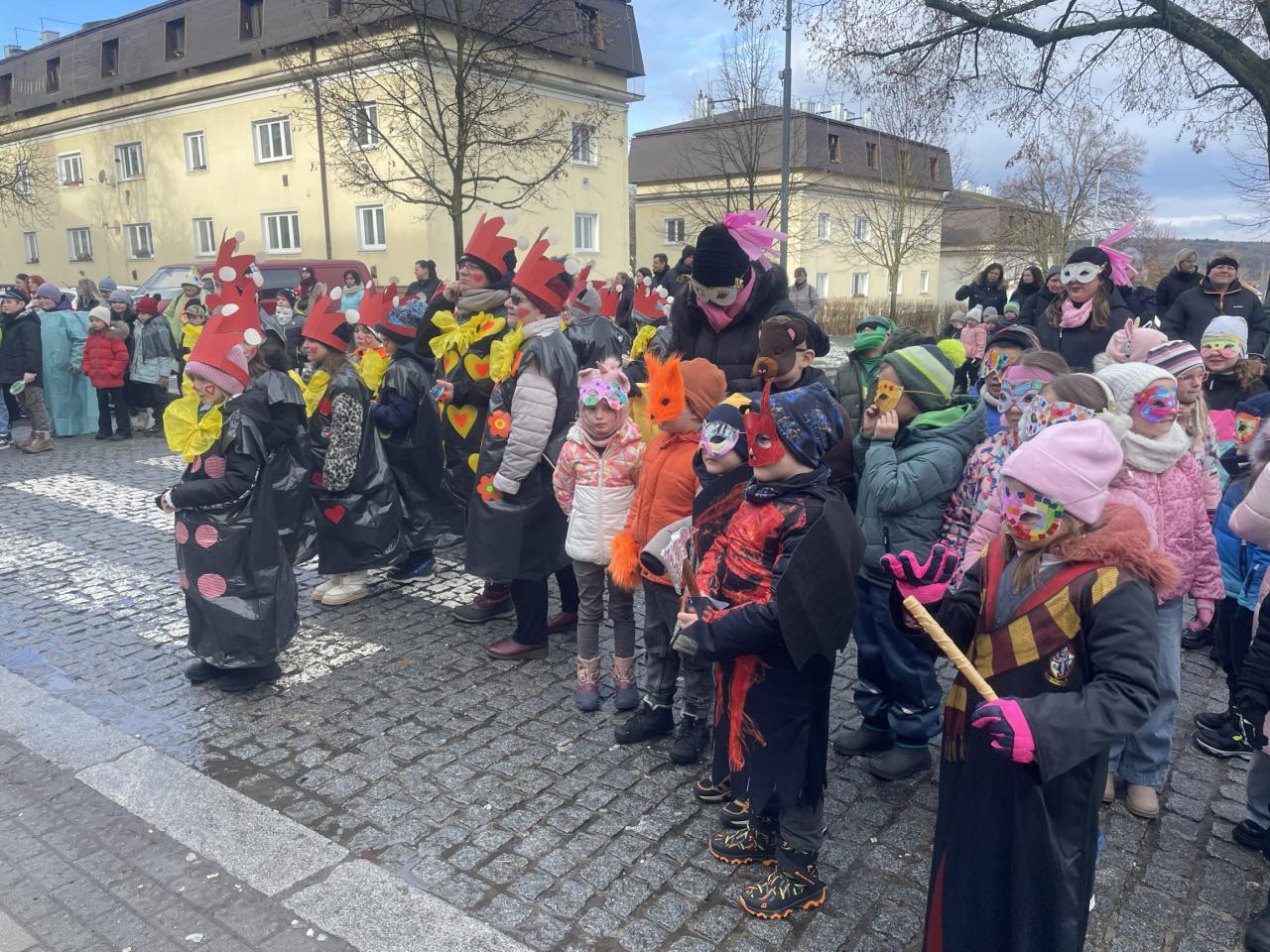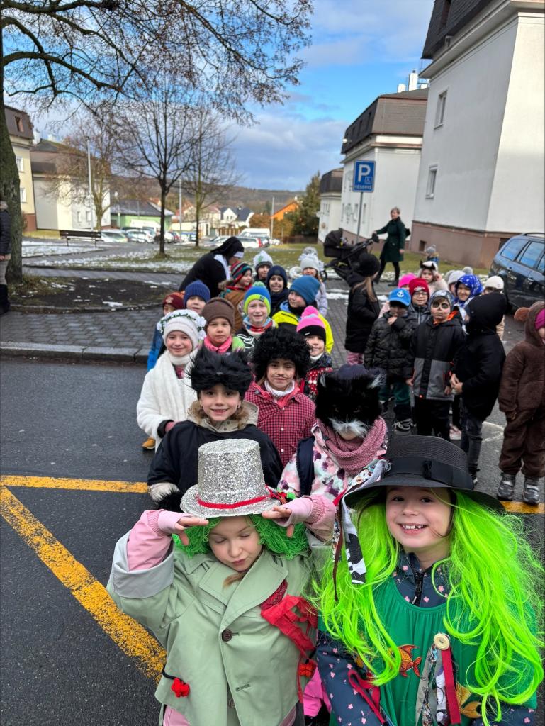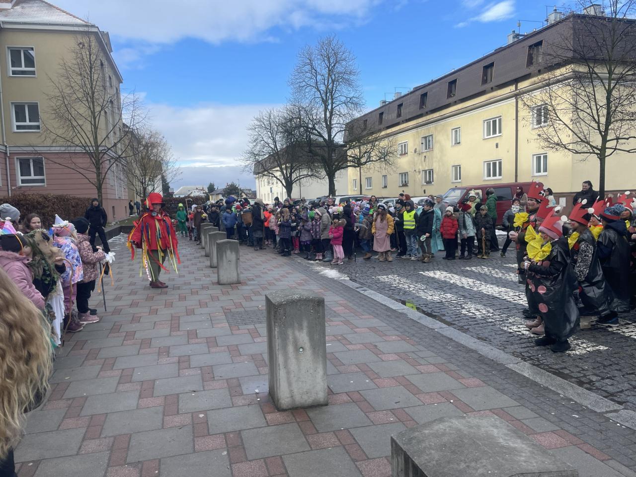 Ve třídách si žáci 1.- 4. ročníku připomněli tento dávný zvyk, představili si tradiční masky a pokrmy. V deset hodin se děti a učitelé sešli před budovou školy, kde laufr převzal z rukou paní místostarostky klíč od města a tím všichni získali povolení zúčastnit se masopustního průvodu. Veselá cesta městem proběhla za zpěvu písní a mnozí diváci byli překvapeni spoustou povedených masek, které byly na závěr odměněny perníky ve tvaru zvířátek.![]()