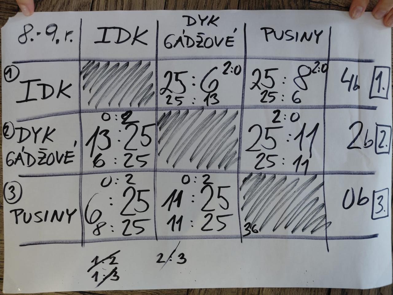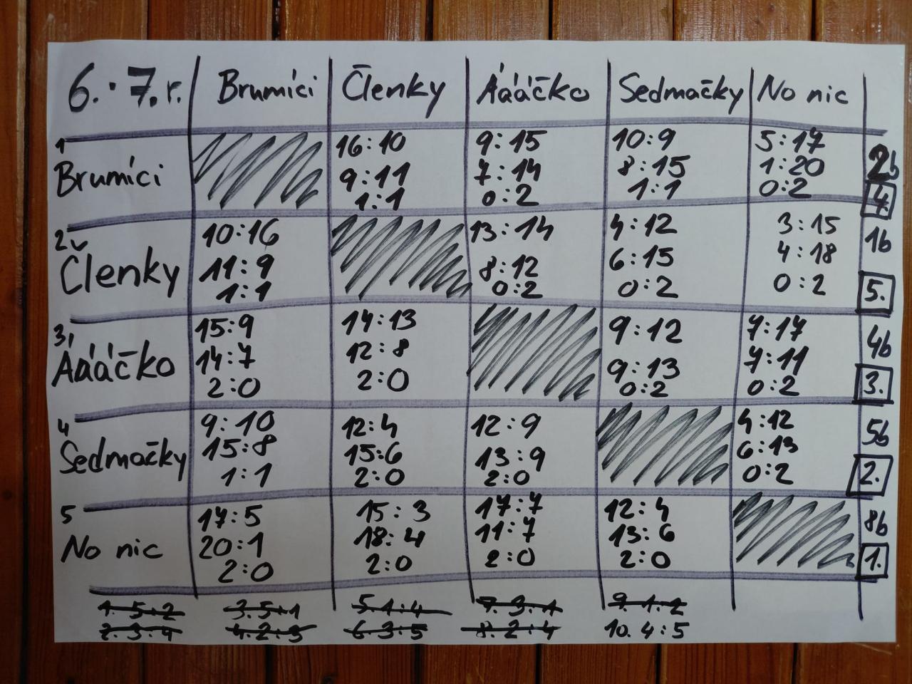 Po odehrání všech utkání se v mladší kategorii na 1. místě umístil tým No nic, 2. místo získaly Sedmačky, 3. místo obsadil tým Ááčko, 4. místo patřilo Brumíkům a 5. místo týmu Členky.